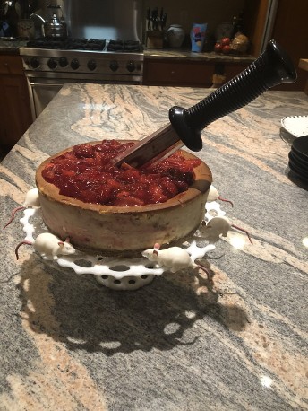 A Cheesecake Fan took this Strawberry cheesecake to another level for Halloween!